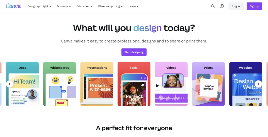 It comes with a free version and has a user-friendly interface, extensive library of design templates, customizable options, and collaborative features.