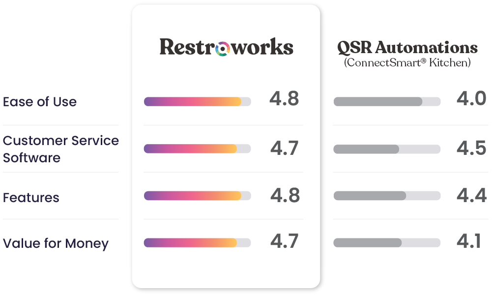 QSR Automations (ConnectSmart Suite) users often feel overwhelmed with complicated system configurations, cluttered screens, confusing interfaces, and rigid order routing. It slows the line instead of speeding it up. Restroworks is simple, intuitive and flexible. With smart features like customizable order routing, responsive displays, and flexible workflows, it not only elevates your kitchen efficiency but also helps you operate profitably in true sense.